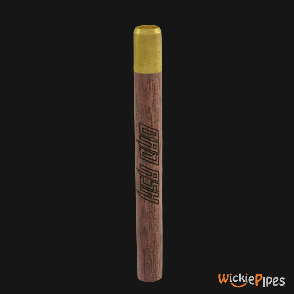 A hybrid one-hitter for herb users made from brass and exotic woods to smoke herbs in style.