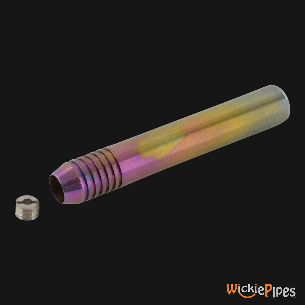 The Hightanium Designed Why Not One Hitter is made from 100% pure grade titanium making this one of the best smoking and fresh tasting one-hitters available. The pure titanium pipe provides a clean smoking experience. With a taste as smooth as glass, you can rest assured knowing you are inhaling your herb through pure titanium. In a rather ingenious manner, it is threaded to allow both the end and the resin catch to be removed for super easy cleaning! Best of all, it can easily fit in your, dugout, pocket, cigarette pack, or bag. Made in USA.
