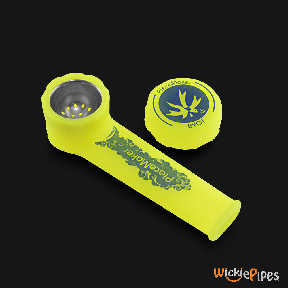 Karma silicone pocket pipe by PieceMaker introduces a convenient design to enjoy smoking in style. Karma is made from food grade silicone and offers an innovative all-in-one stainless steel removable permanent screen bowl. Karma features a side-carb for adding cool air, a hefty size bowl and a clever spill-proof cap that doubles as a bottle cap for seamless traveling. You can place Karma in your pocket, or bend it to fit your watch pocket if you need room your main pockets for larger items. Cleaning is quick and simple. Use alcohol wipes or wipe clean using warm water and dish soap.