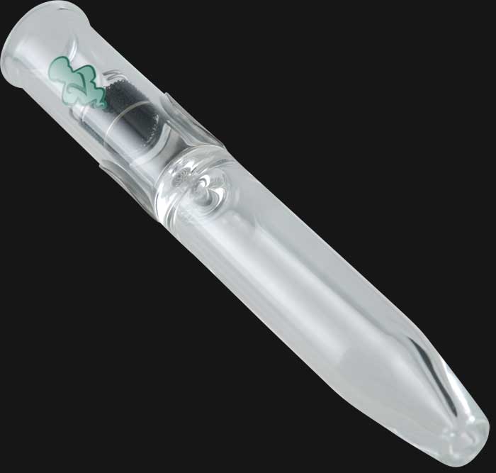 Vapor Genie Glass Bat vaporizer is clearly the first to have transformed the classic-bat pipe design right before our eyes. Made with Schott borosilicate German glass, measuring 2.5 mm thick-wall, the uncompromising Vapor Genie Glass Bat vaporizer is sure durable. Its 42-gram light-weight and one-piece design will make traveling with VG Glass Bat easy – no extra batteries, no chargers and no extra accessories – just 1 lighter! In addition, the sliding stainless steel door design allows access to your bowl – simply twist to open and close to preserve – a new innovation found only on the Vapor Genie Glass Bat vaporizers. Using the same patented high purity inert silicon carbide ceramic flame filter, replacing will never be necessary. The 316 stainless steel mesh screen provides added filtration for a more pleasant vaporizing experience. Vapor Genie Glass Bat vaporizer can easily be cleaned, since very little tar is created during vaporization. To use, simply fill the bowl with loose grounded s, slide to close the door, and apply flame while inhaling to create vapors.